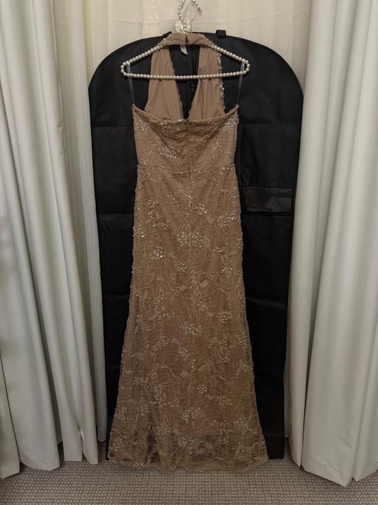 تألقي بإطلالة لا تُنسى مع هذا الفستان البيج الساحر الذي يجمع بين البساطة الراقية والتفاصيل الفخمة. تصميمه الضيق الذي ينساب بانسيابية على القوام يبرز أنوثتك بأناقة، بينما تضفي التطريزات اللامعة والزخارف الناعمة لمسة من الفخامة والجاذبية.