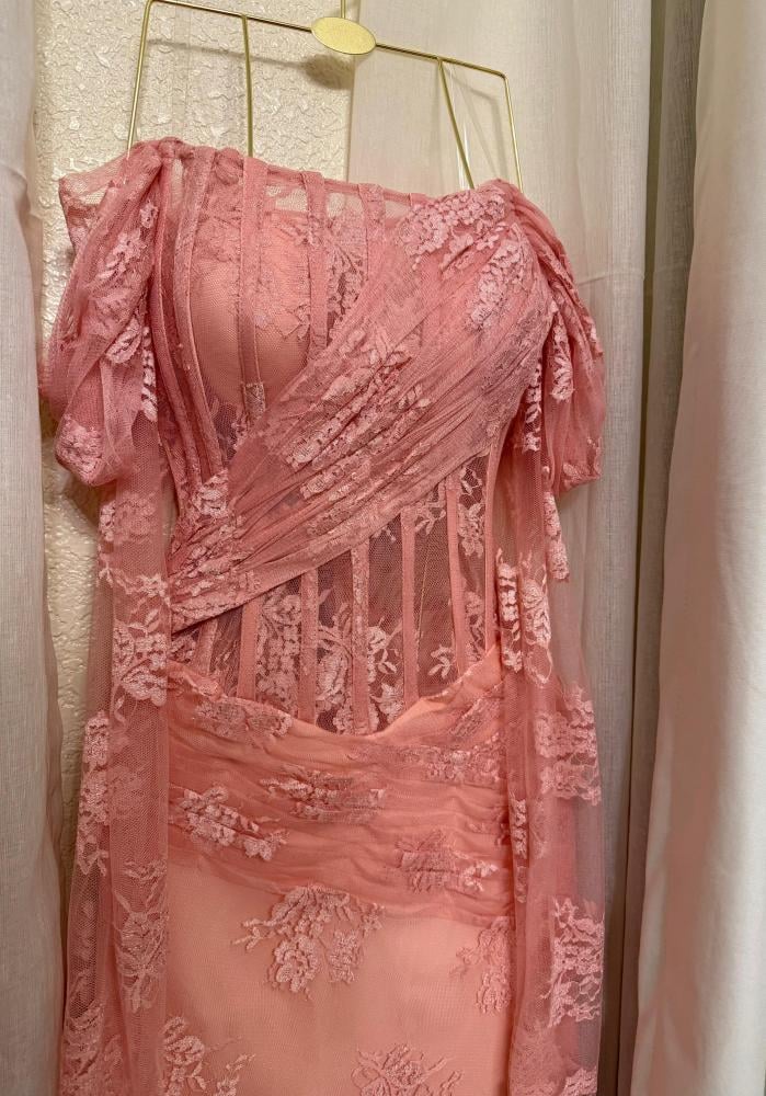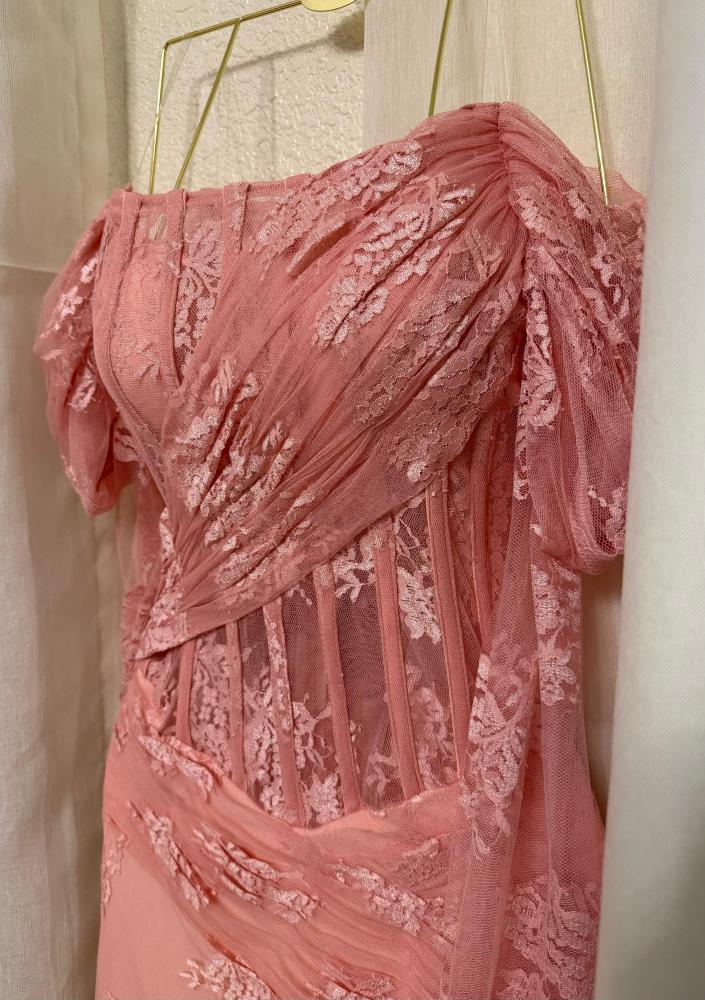 استوحي جمالك من الربيع مع هذا الفستان الرقيق باللون الوردي الخوخي الناعم.